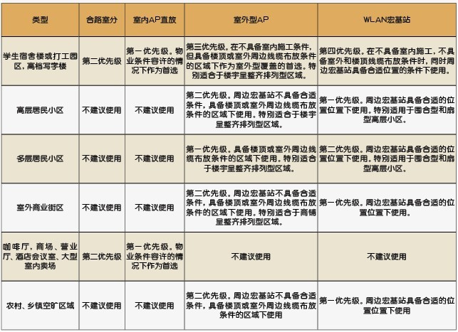 此外,湖北移动对于WLAN的建设方式,也有一定的经验性总结,具体如下表: